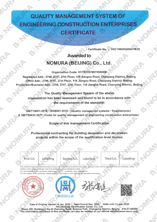 | Business license | Architecture, special design of fitment and decoration project, Second Grade |